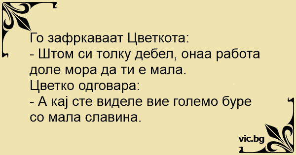 - Штом си толку дебел, онаа работа доле мора да ти е мала.