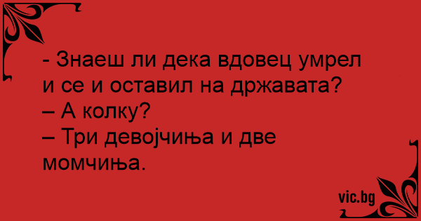 - Знаеш ли дека вдовец умрел и се и оставил на државата?