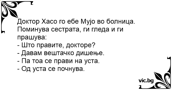 Доктор Хасо го eбe Мујо во болница. Поминува сестрата, ги гледа и ги прашува: