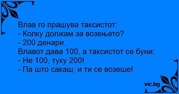 Влав го прашува таксистот:
