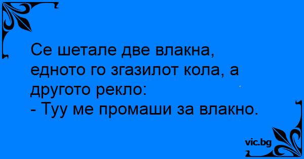 Се шетале две влакна, едното го згазилот кола, а другото рекло:
