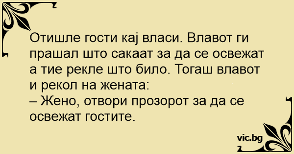 – Жено, отвори прозорот за да се освежат гостите.