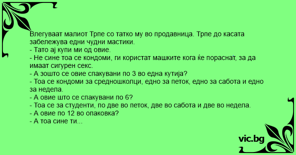 Влегуваат малиот Трпе со татко му во продавница. Трпе до касата забележува едни чудни мастики.