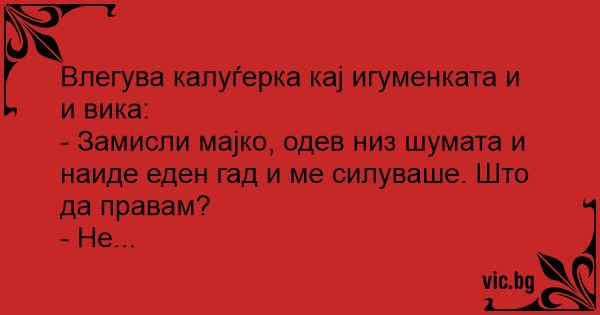 - Замисли мајко, одев низ шумата и наиде еден гад и ме силуваше. Што да правам?