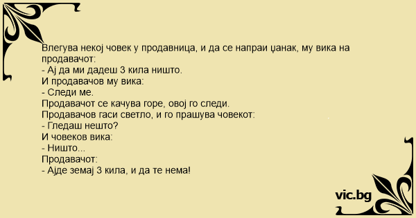 Влегува некој човек у продавница, и да се напраи џанак, му вика на продавачот: