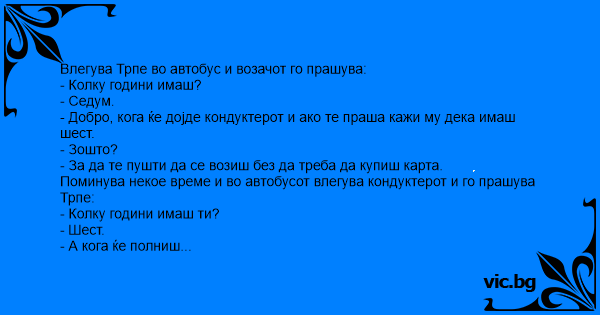 Влегува Трпе во автобус и возачот го прашува:
