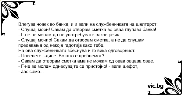- Слушај мори! Сакам да отворам сметка во оваа глупава банка!