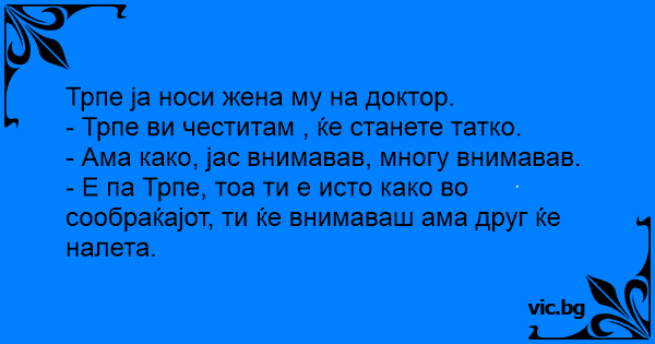 - Е па Трпе, тоа ти е исто како во сообраќајот, ти ќе внимаваш ама друг ќе налета.