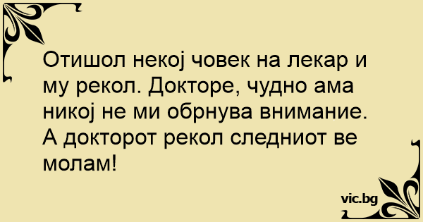 Отишол некој човек на лекар и му рекол. Докторе, чудно ама никој не ми обрнува внимание.