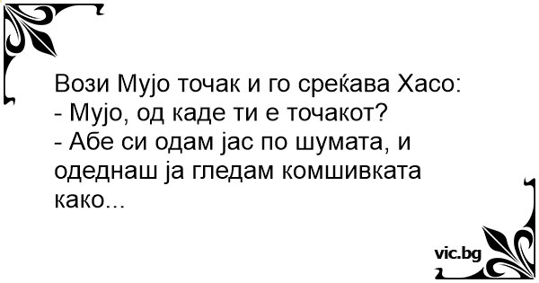 - Абе си одам јас по шумата, и одеднаш ја гледам комшивката како...