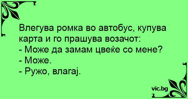 Влегува ромка во автобус, купува карта и го прашува возачот: