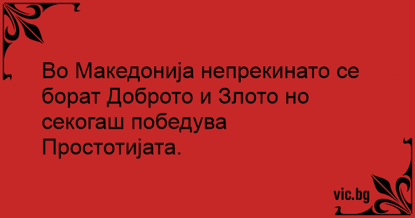 Во Македонија непрекинато се борат Доброто и Злото но секогаш победува Простотијата.