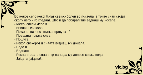 - Рекол свекорот и снаата веднаш му донела.