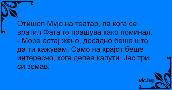 Отишол Мујо на театар, па кога се вратил Фата го прашува како поминал: