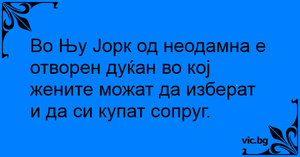 Во Њу Јорк од неодамна е отворен дуќан во кој жените можат да изберат и да си купат сопруг. 0 0 0 Вицеви за семејството