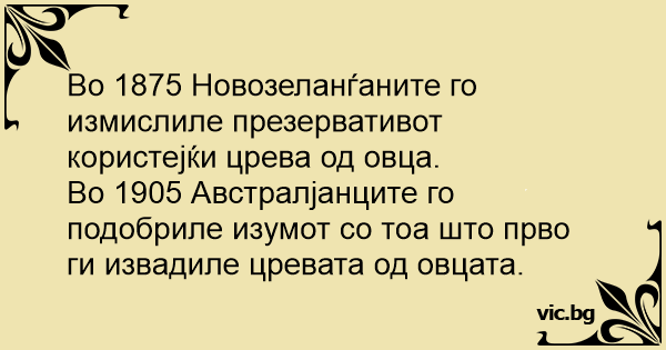 Во 1875 Новозеланѓаните го измислиле презервативот користејќи црева од овца.