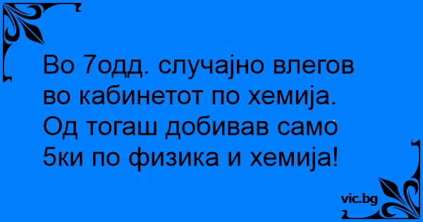 Во 7одд. случајно влегов во кабинетот по хемија.