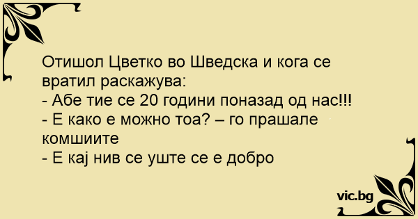 Oтишол Цветко во Шведска и кога се вратил раскажува: