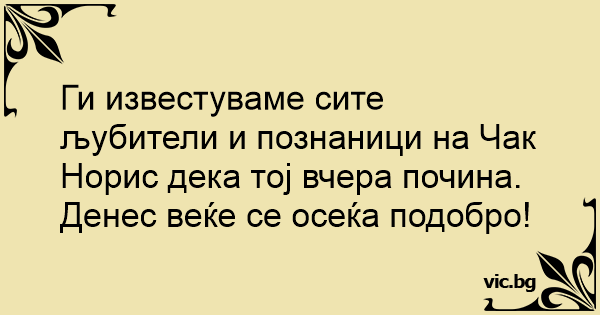 Ги известуваме сите љубители и познаници на Чак Норис дека тој вчера почина.