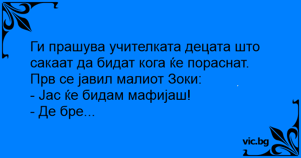 Ги прашува учителката децата што сакаат да бидат кога ќе пораснат.