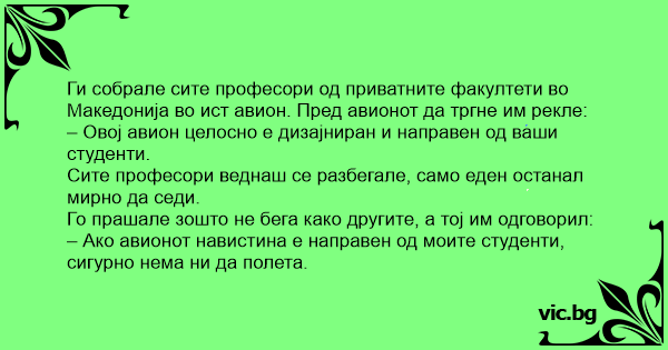 Ги собрале сите професори од приватните факултети во Македонија во ист авион. Пред авионот да тргне им рекле: