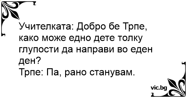 Учителката: Добро бе Трпе, како може едно дете толку глупости да направи во еден ден?