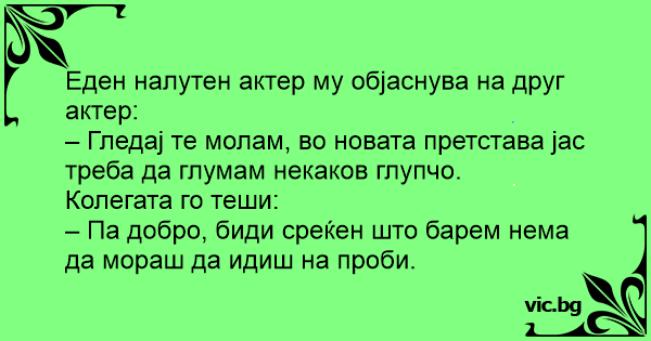 – Гледај те молам, во новата претстава јас треба да глумам некаков глупчо.