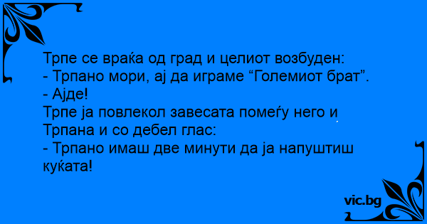 Трпе ја повлекол завесата помеѓу него и Трпана и со дебел глас: