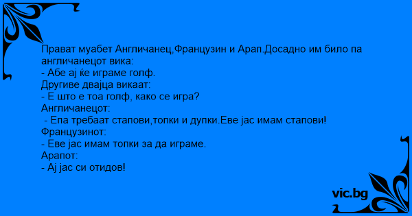 Прават муабет Англичанец,Французин и Арап.Досадно им било па англичанецот вика: