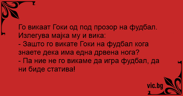 - Зашто го викате Гоки на фудбал кога знаете дека има една дрвена нога?