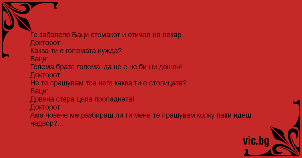 Го заболело Баци стомакот и отичол на лекар.