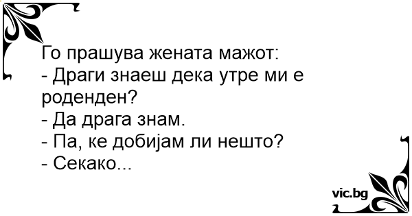 Го прашува жената мажот: -...