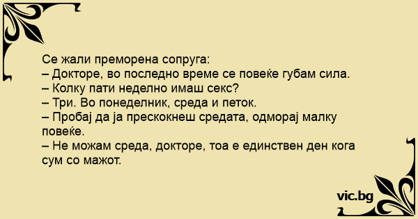 – Не можам среда, докторе, тоа е единствен ден кога сум со мажот.