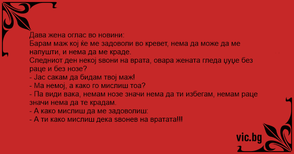 Следниот ден некој ѕвони на врата, овара жената гледа џуџе без раце и без нозе?