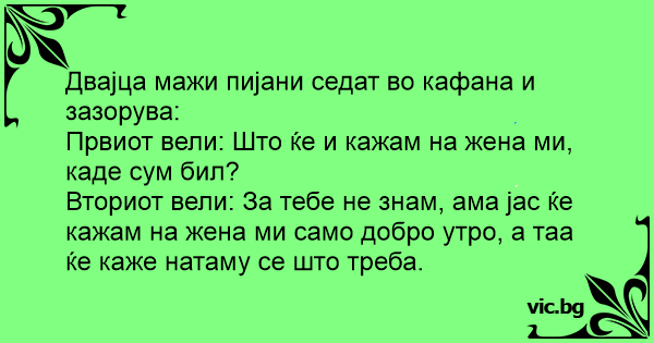 Вториот вели: За тебе не знам, ама јас ќе кажам на жена ми само добро утро, а таа ќе каже натаму се што треба.