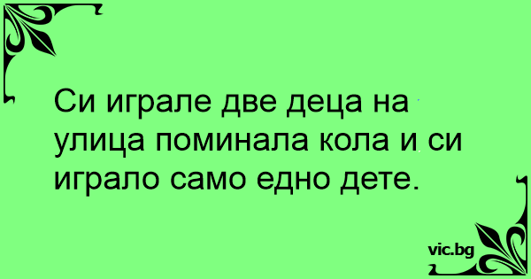Си играле две деца на улица поминала кола и си играло само едно дете.