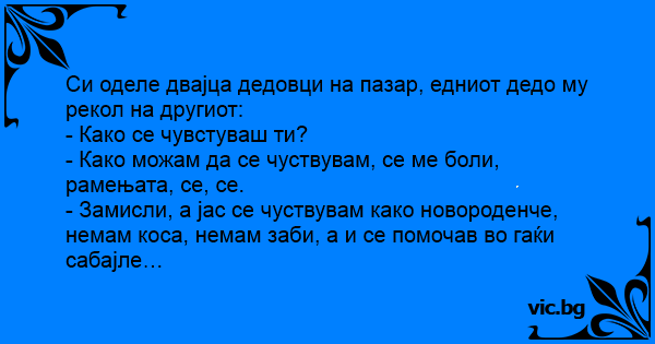 Си оделе двајца дедовци на пазар, едниот дедо му рекол на другиот: