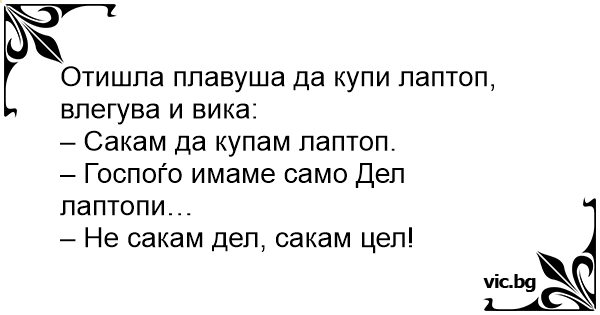 Отишла плавуша да купи лаптоп, влегува и вика: