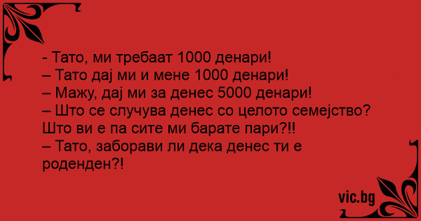 – Што се случува денес со целото семејство? Што ви е па сите ми барате пари?!!
