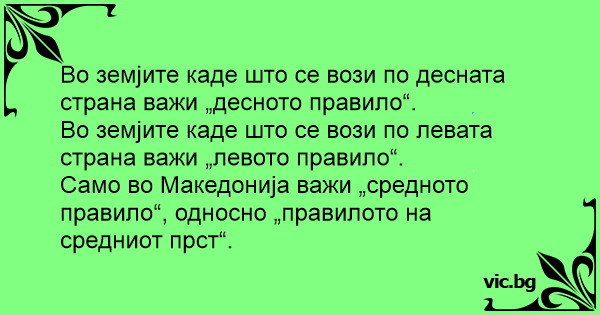 Само во Македонија важи „средното правило“, односно „правилото на средниот прст“.