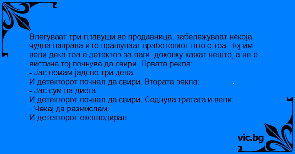 Trois femmes passent au détecteur de mensonge. La première, rousse, dit : - "Moi je pense que je suis la plus belle..." et le détecteur de se mettre immédiatement à biper. La deuxième, brune, dit :...