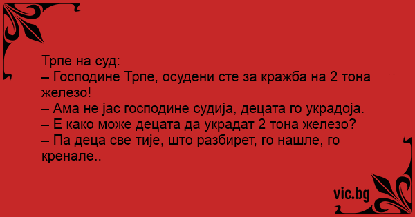 – Господине Трпе, осудени сте за кражба на 2 тона железо!