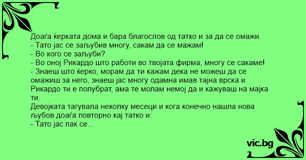 - Тато јас пак се заљубив имам нов дечко многу се сакаме и сакаме да се земеме.