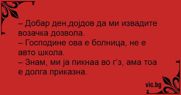 – Добар ден,дојдов да ми извадите возачка дозвола.