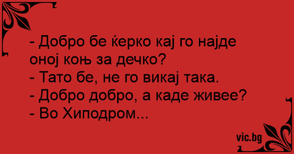 - Добро бе ќерко кај го најде оној коњ за дечко?