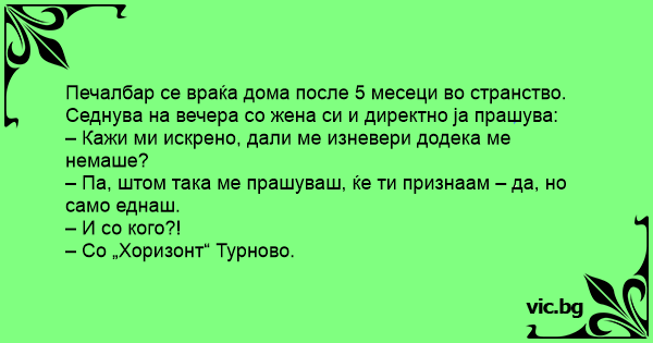 – Кажи ми искрено, дали ме изневери додека ме немаше?
