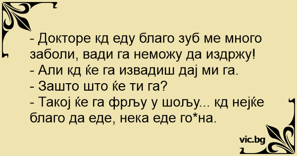 - Докторе кд еду благо зуб ме много заболи, вади га неможу да издржу!