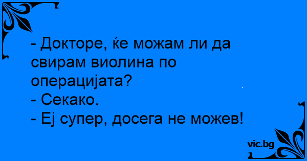 - Доктор, скажите, я смогу играть на скрипке после операции? - Да, сможете. - Круто! А ведь раньше не мог.