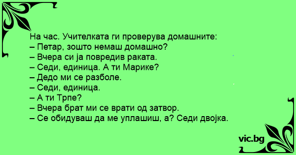 – Петар, зошто немаш домашно?