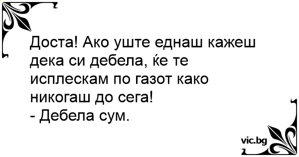 Доста! Ако уште еднаш кажеш дека си дебела, ќе те исплескам по газот како никогаш до сега!